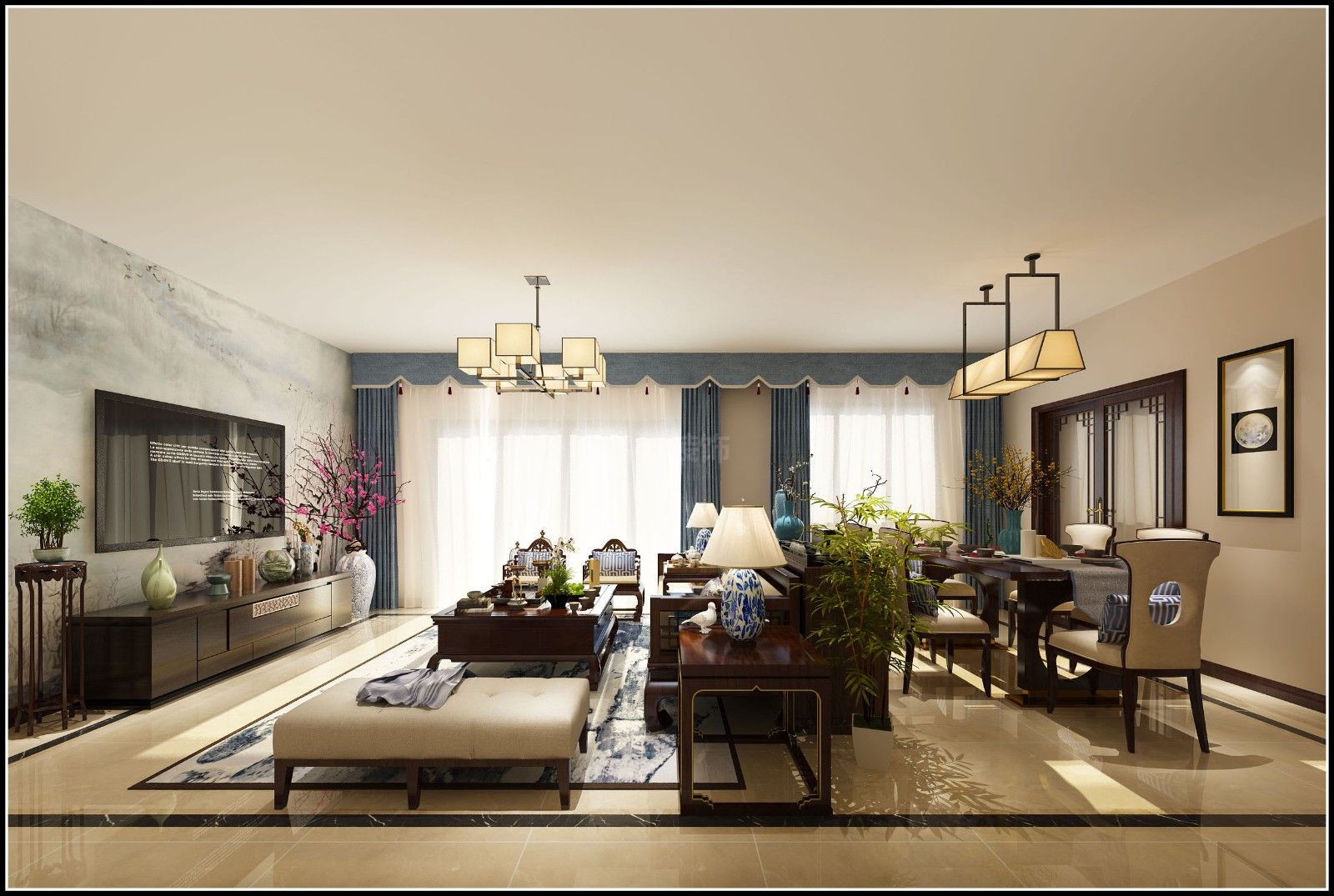 柳州201-300平米新中式風格大信海岸家園家裝設計效果圖