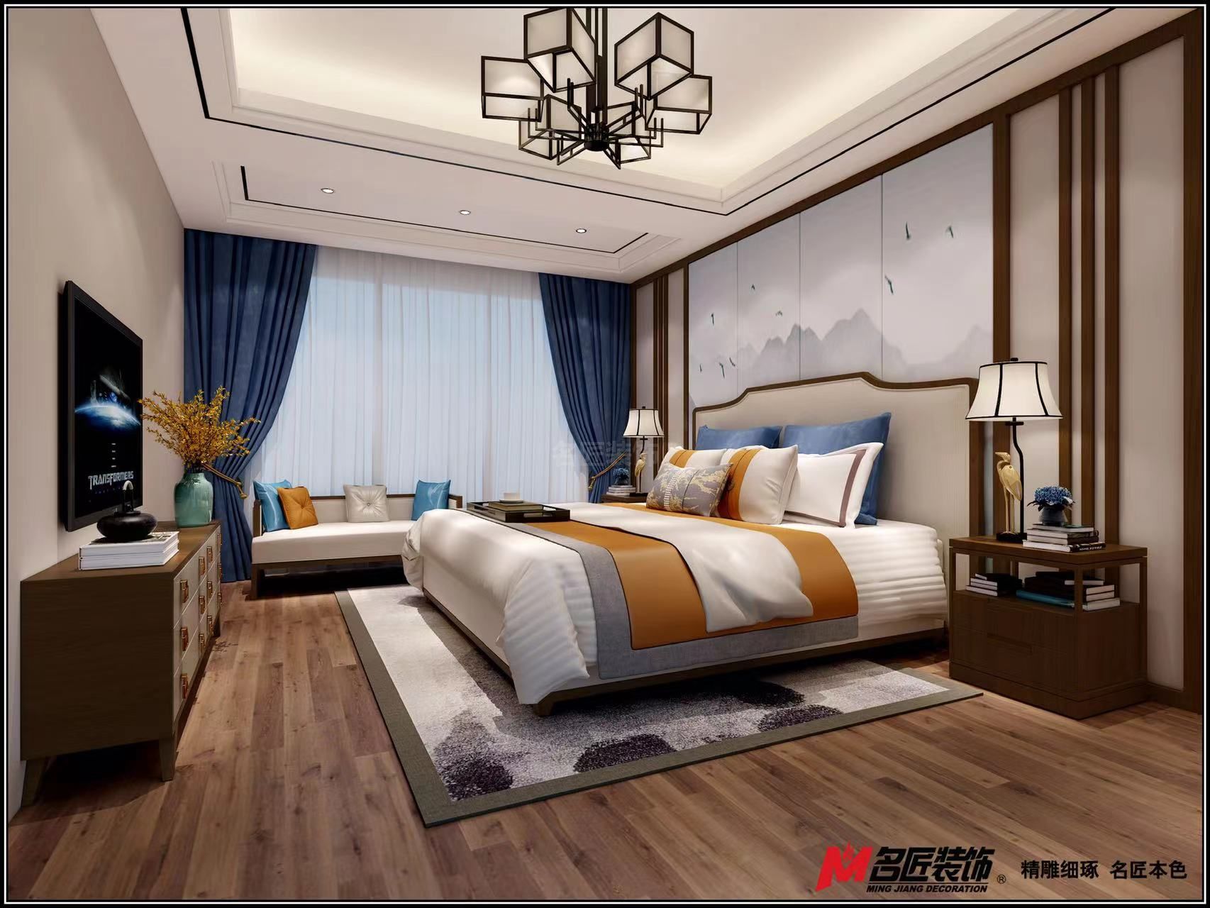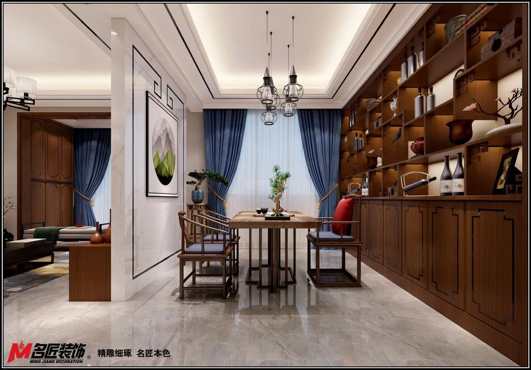 遂寧金域央墅三居新中式風格裝修效果圖
