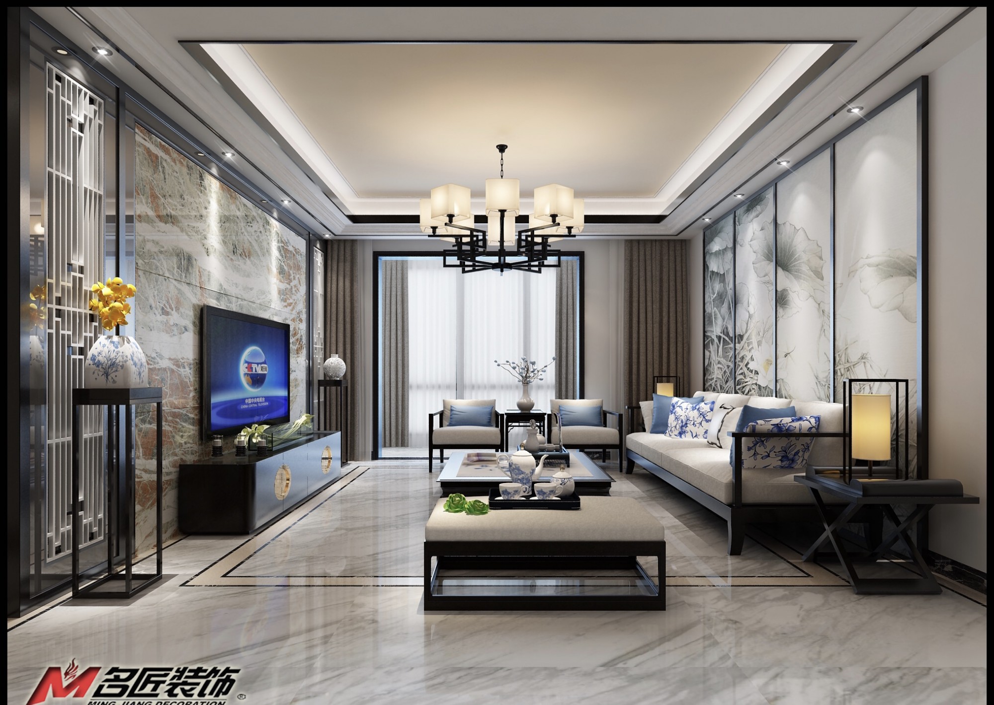 佛山同濟(jì)廣場(chǎng)四居新中式風(fēng)格裝修效果圖