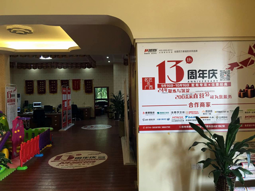 在名匠裝飾梧州公司里,13周年慶“墅有專攻、住要經典”活動正在火熱進行中,隨處可以看到活動的信息等。