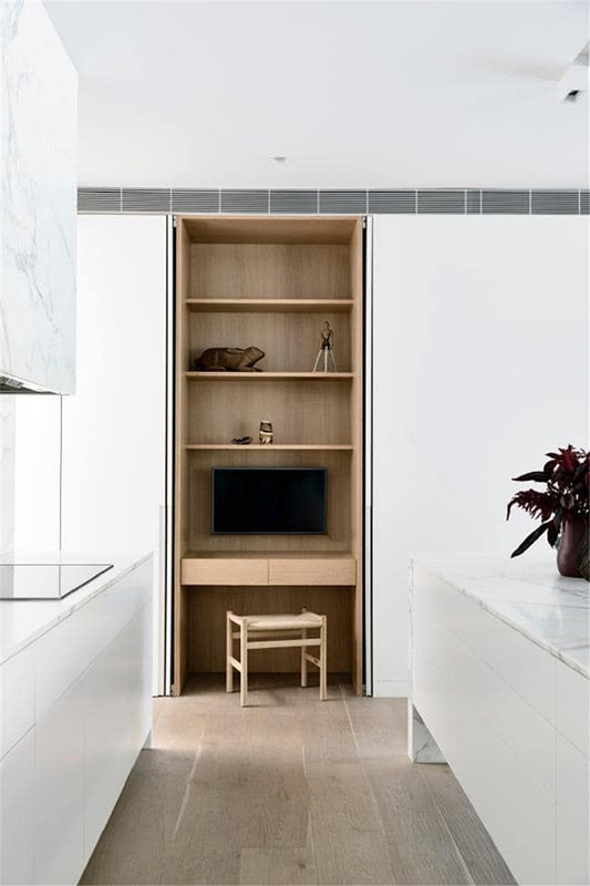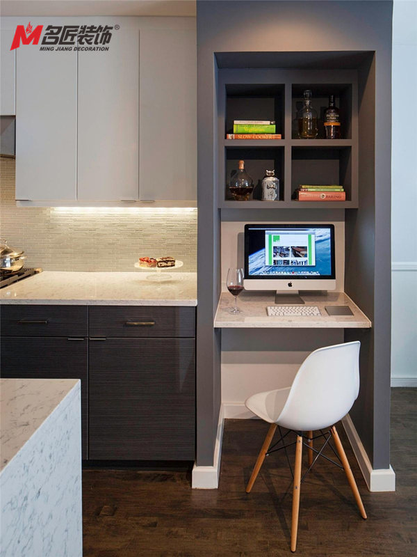 如果經(jīng)常在家做飯,可以在廚房一角設(shè)置一個小型書房,在家務(wù)間隙查查菜單、記錄開支或者做陶冶情操,放心做自己想做的事。