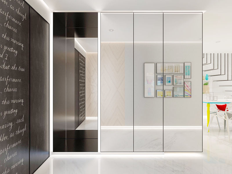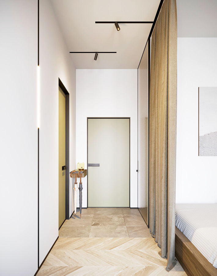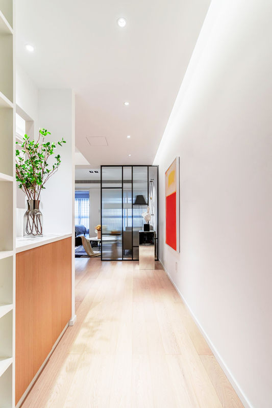 也可以選擇用軌道燈、磁吸軌道燈、線性燈的形式,把燈的軌道從玄關(guān)一直延伸到走廊,根據(jù)需求來(lái)決定燈的安裝數(shù)量。這種設(shè)計(jì)方便在既讓你擁有了整體照明,需要時(shí)還能把軌道燈的燈頭轉(zhuǎn)向墻面或者是柜面充當(dāng)重點(diǎn)照明。