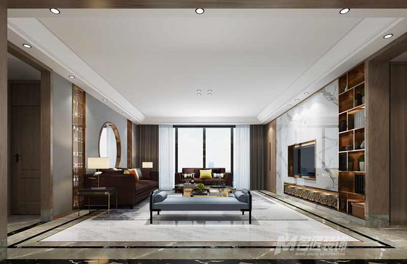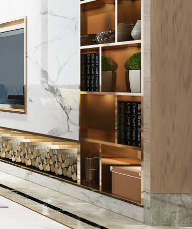 大理石、原木、金屬元素完美結(jié)合,澄澈明凈的質(zhì)感升華了整個(gè)空間的意境,給人精神上的高級(jí)享受。