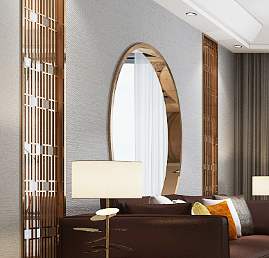 沙發(fā)背景開洞的創(chuàng)意讓會(huì)客廳與書房之間產(chǎn)生互動(dòng),視野更通透,結(jié)合一層薄簾裝飾,成為空間的一道風(fēng)景線。