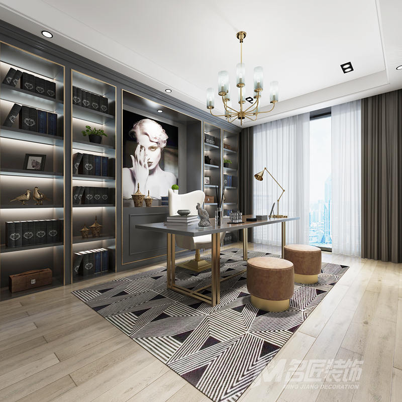 輕奢風(fēng)格的書房,是這個(gè)“面包”世界的迷人芬芳,講究實(shí)用卻不脫離高級(jí)趣味。