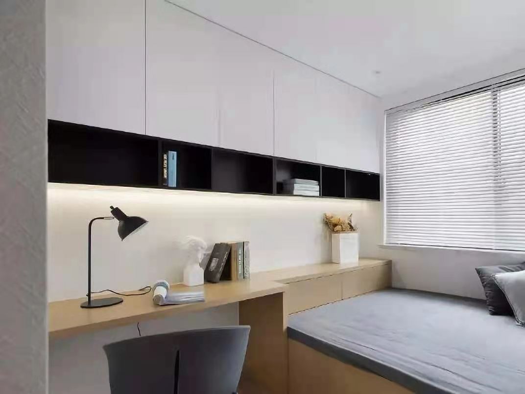 5、書房一般是家里面安靜的地方,書房的主要功能是讀書、學習,所以需要安靜的氛圍,才能讓人沉下心來安心讀書寫字。所以書房室內裝修設計忌太吵鬧,應該盡量距離喧鬧的客廳和嘈雜的廚房遠一些,書房的窗外也不宜為嘈雜的街面、市場等。